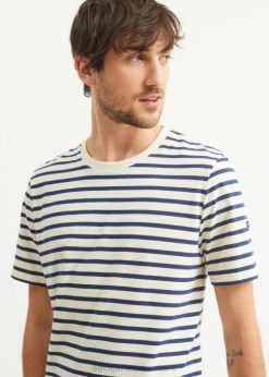 ecru/flåde breton stribet kortærmet skjorte blødt bomuld 0J2B46 relevant moderne unisex Saint James