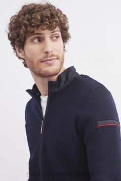Kæretegnet ved sin nøgternhed, bevarer den bretonske strikjakke det rene look fra saint james fisherman-trøjer. den har nogle unikke detaljer såsom den røde linje, der angiver lommen på venstre arm. eller lærredsindsatserne på kraven, lommerne, lynlåsen og albuepuderne.