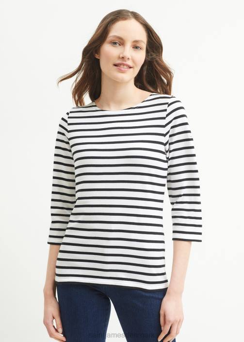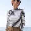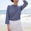 i sine karakteristiske bretonske striber, attraktive og farverige fra kysten til byen, egner den alsidige galathee ii stribede t-shirt sig til forskellige stilarter med spontanitet og stil. sæt den sammen med croppede jeans og balletsko for et øjeblikkeligt 1930’er fransk riviera-look! dens 3/4-lange ærmer, rund hals og tætsiddende talje giver den ikoniske mariniere et feminint præg.